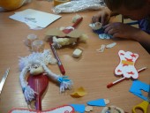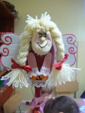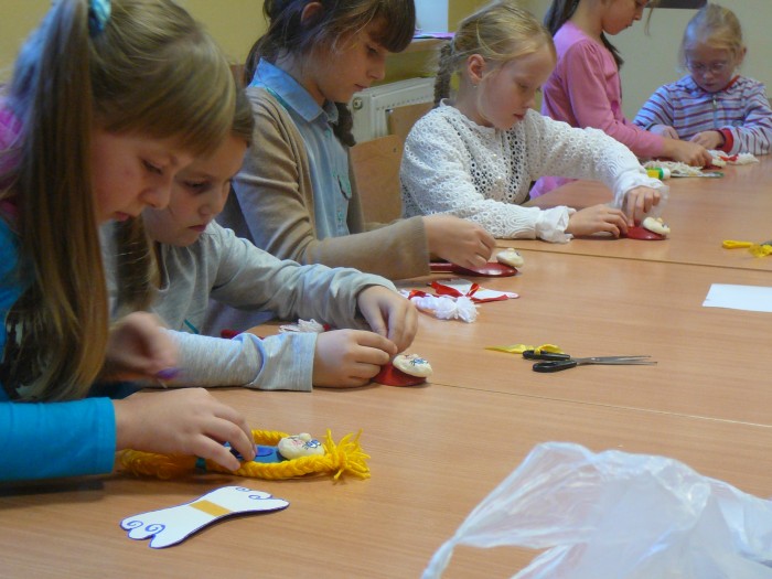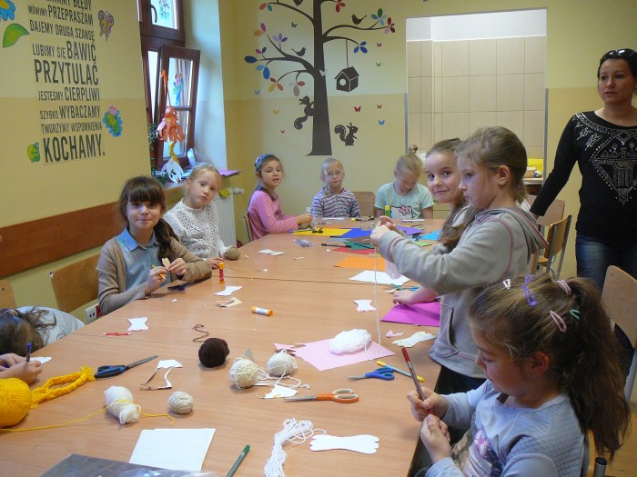W dniu 05.11 Pani Marzena Chrobak-Pudełek prowadziła z dziećmi warsztaty. Z łyżek drewnianych, włóczki i kartonu powstały przecudne anioły. Wszyscy właściwie w dzieciństwie lubili tworzyć różnego rodzaju pacynki, pajacyki i ludziki. Nieodmiennie zawsze była to świetna zabawa dla dzieci i artystycznie wykorzystanie najróżniejszych resztek. Dajmy naszym pociechom taką możliwość artystycznego wyżycia, a duma z własnoręcznego stworzenia czegoś jest nieoceniona.